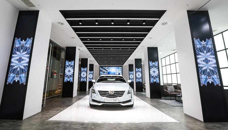 본 매장에서는 전면으로 쏟아지는 눈부신 자연광과 전시된 캐딜락 차량들을 비추는 강한 조명까지 더해져 조도가 매우 높은 2층 공간의 환경을 고려해 빛 반사방지 패널이 탑재된 단독형 사이니지 제품을 설치했습니다.